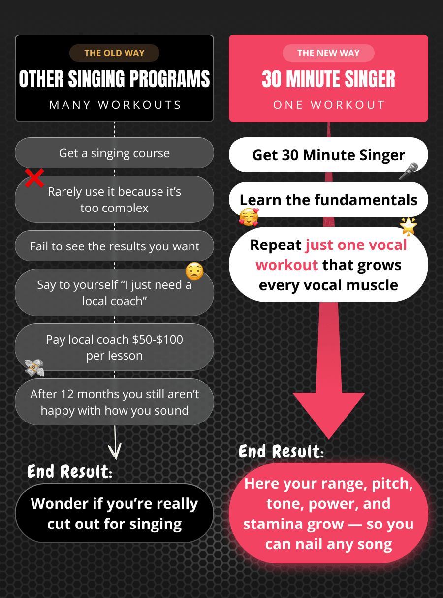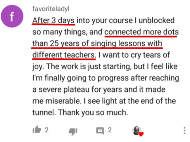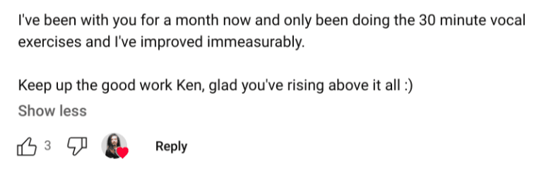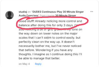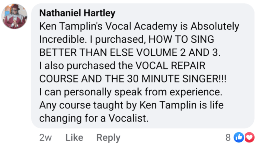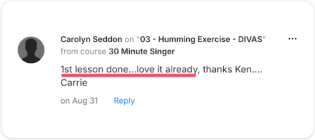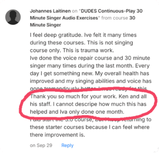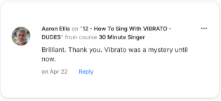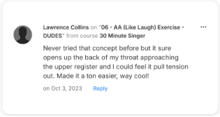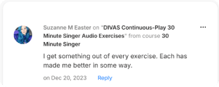Meaning, they give you different workouts, lessons, and courses to choose from… depending on what area you want to grow in (range, vibrato, pitch, tone, falsetto, mix, etc.) or how long you’ve been doing the program (lesson 1, lesson 2, lesson 3, etc.)